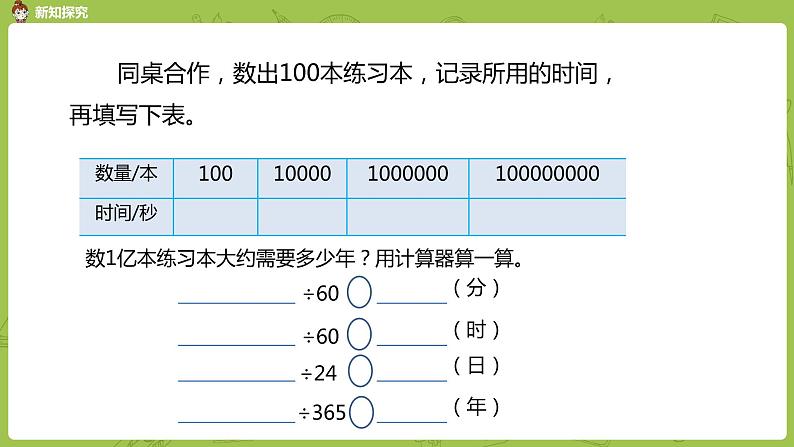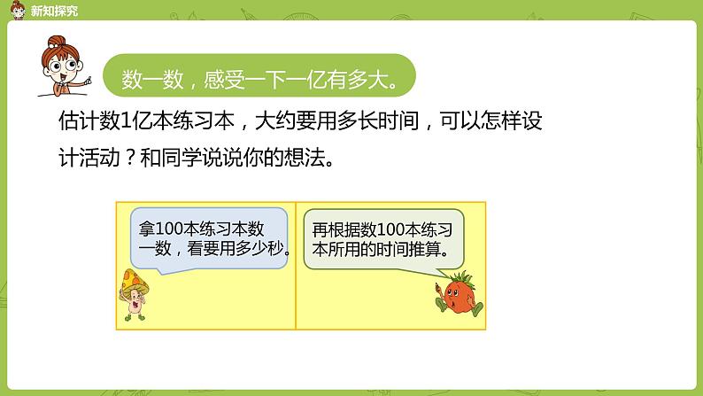 估计数1亿本练习本,大约要用多长时间,可以怎样设计活动?和同学说说你的想法。