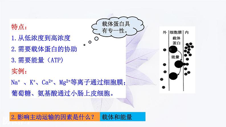 1.观察主动运输的过程,从载体、能量和运输方向三个方面分析主动运输有何特点?