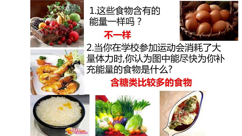 展开1.这些食物含有的能量一样吗?