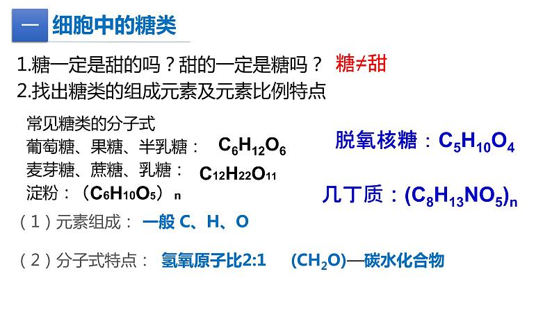 2.找出糖类的组成元素及元素比例特点