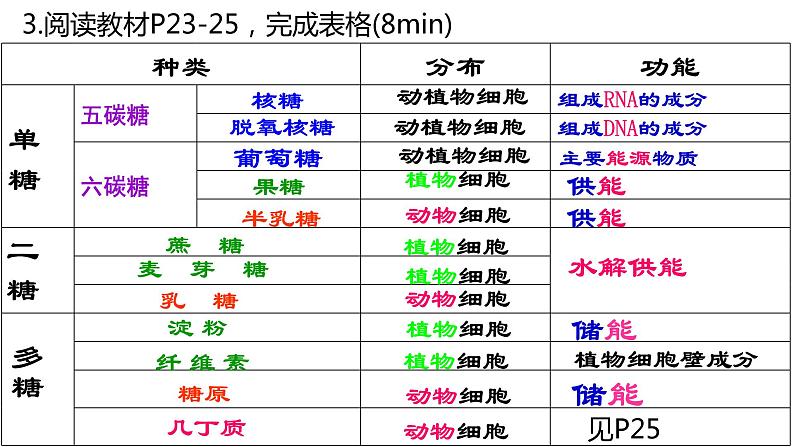 3.阅读教材P23-25,完成表格(8min)