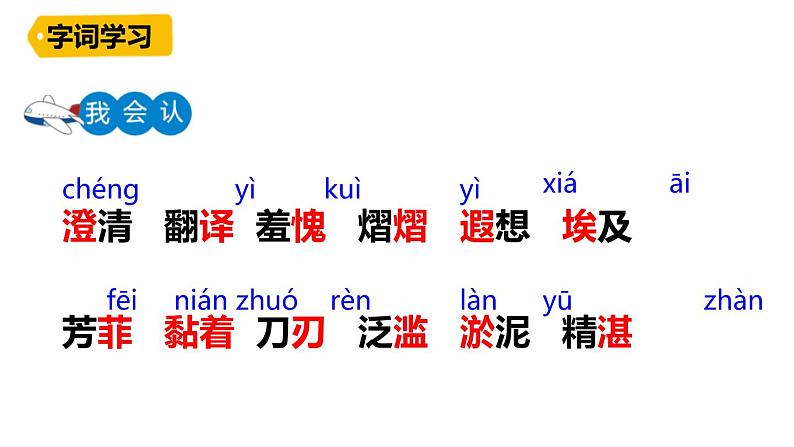 熠熠(yì zhě) 淤泥(yú yū ) 遐想(xiá jiǎ ) 黏着(zhē zhuó)羞愧(kuì guǐ) 黄澄澄( chéng dèng)