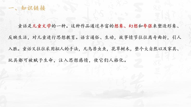 这是一份人教部编版七年级上册19 皇帝的新装背景图ppt课件,共28页。PPT课件主要包含了背景知识,认字识词,课文赏析,众人的虚伪等内容,欢迎下载使用。