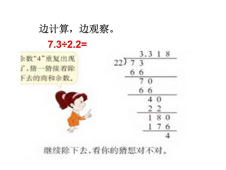 小学数学西师大版五年级上册循环小数授课ppt课件: 这是一份小学数学西师大版五年级上册循环小数授课ppt课件,共20页。PPT课件主要包含了3÷22,÷37,试一试,简便写法,有限小数03,无限小数,正确分类,判断正误,思考题等内容,欢迎下载使用。
