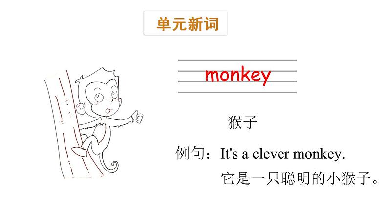 例句:It's a clever mnkey. 它是一只聪明的小猴子。