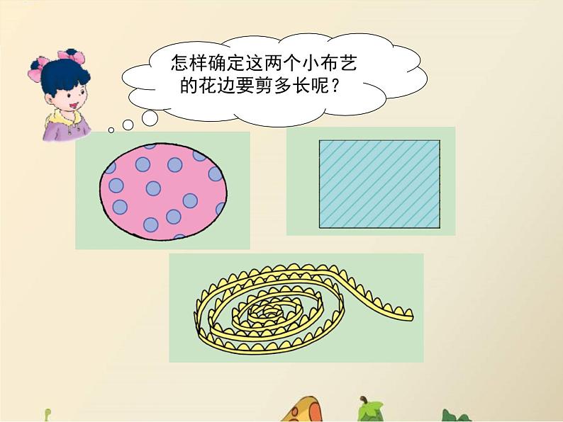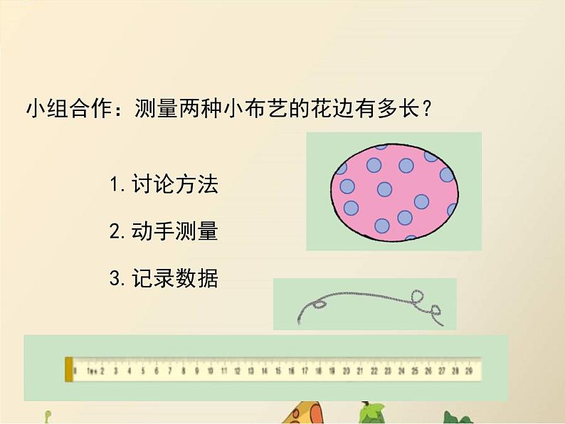小组合作:测量两种小布艺的花边有多长?