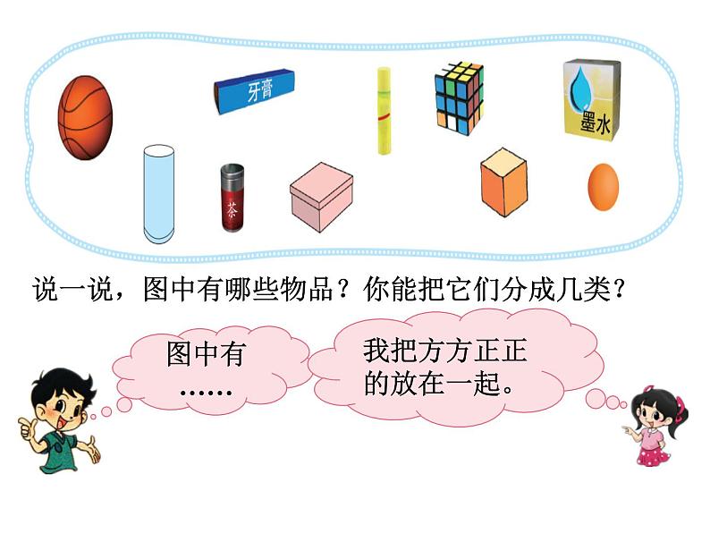 展开说一说,图中有哪些物品?你能把它们分成几类?