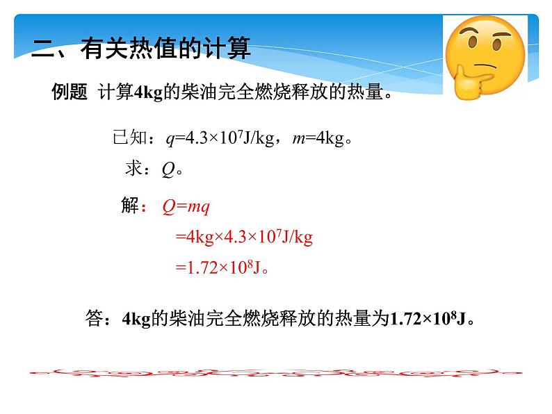 例题 计算4kg的柴油完全燃烧释放的热量。