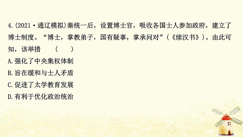 高考历史一轮复习二大一统与秦朝中央集权制度的确立课时作业课件岳麓版