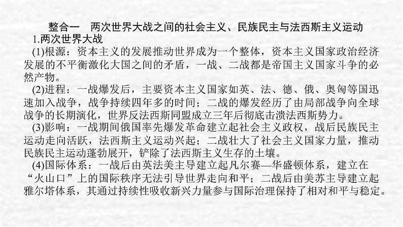 2024版高考历史一轮复习教材基础练第十二单元两次世界大战十月革命与国际秩序的演变主题探究17对两次世界大战的反思教学课件: