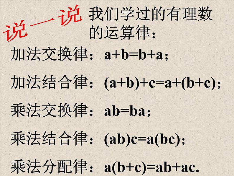 展开我们学过的有理数的运算律: