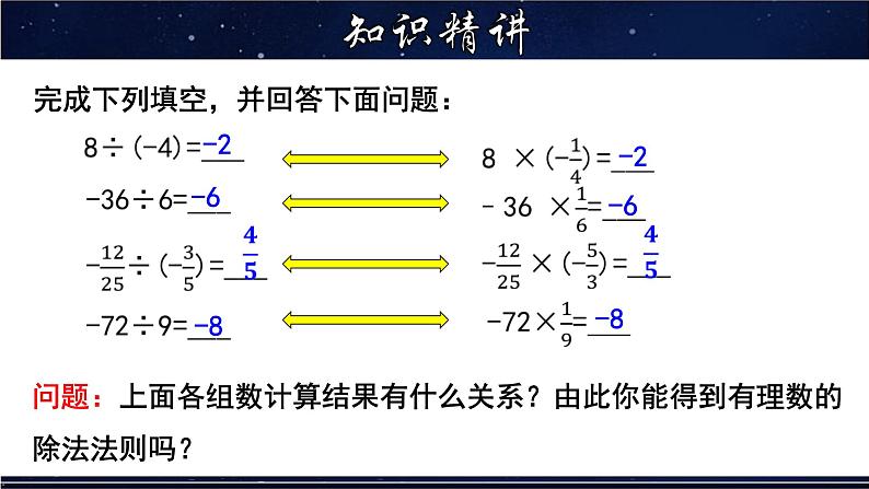 问题:上面各组数计算结果有什么关系?由此你能得到有理数的除法法则吗?