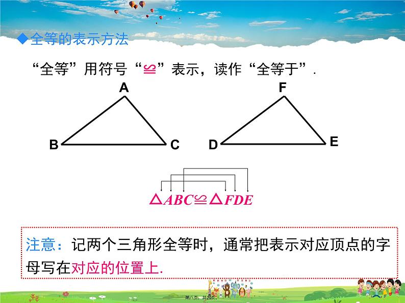 注意:记两个三角形全等时,通常把表示对应顶点的字母写在对应的位置上.