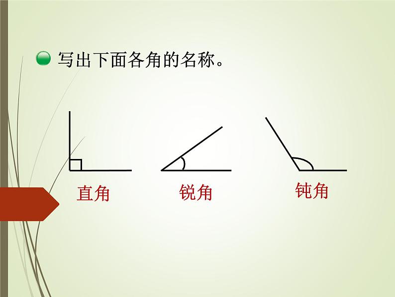 观察每个钟面,并写出时针和分针所形成 的角的名称。