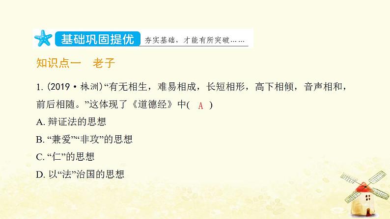 这是一份初中历史人教部编版七年级上册第八课 百家争鸣教案配套课件ppt,共29页。PPT课件主要包含了知识点一老子,知识点三百家争鸣,孔子“仁”,法家儒家道家等内容,欢迎下载使用。