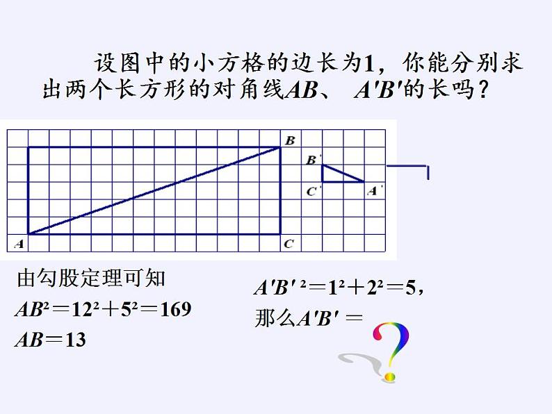 设图中的小方格的边长为1,你能分别求出两个长方形的对角线AB、 A'B'的长吗?