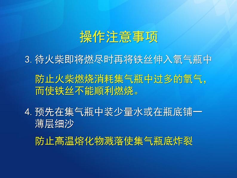 3.待火柴即将燃尽时再将铁丝伸入氧气瓶中