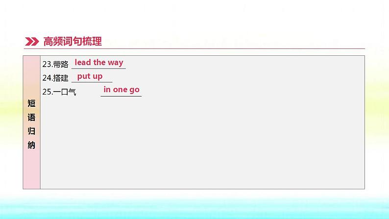 这是一份中考英语高分复习课时突破15Modules3_4九上课件,共26页。PPT课件主要包含了PART FOUR,第四篇 教材过关篇,medal,attend,abroad,doctor,degree,whatever,victory,soldier等内容,欢迎下载使用。