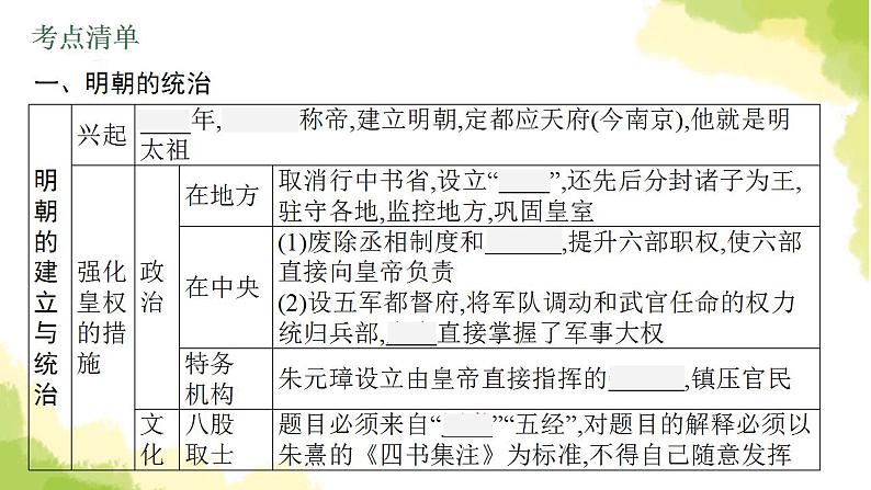 中考历史二轮复习能力提升课件:第一部分 中国古代史 第一部分 中国古代史 第六单元 明清时期:统一多民族国家的巩固与发展(含答案):