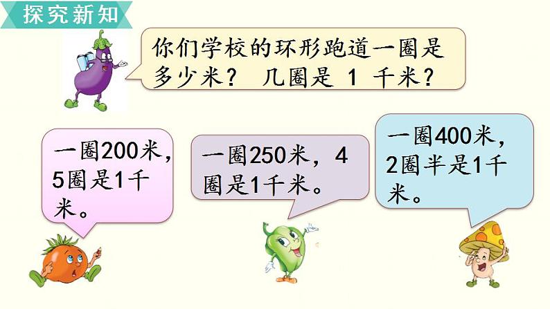 沿100米长的跑道走一走,数数走了多少步,看看大约用了多长时间。照这样计算,走1千米大约有多少步?要用多长时间?