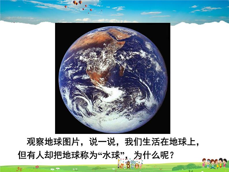 展开观察地球图片,说一说,我们生活在地球上,但有人却把地球称为“水球”,为什么呢?