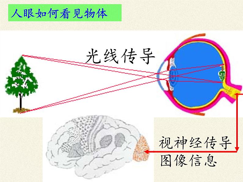 初中物理人教版八年级上册第4节 眼睛和眼镜教学ppt课件: 这是一份初中物理人教版八年级上册第4节 眼睛和眼镜教学ppt课件,共28页。PPT课件主要包含了如何看到,视网膜,相当于凸透镜,睫状体,玻璃体,视神经,相当于光屏,角膜晶状体,知知识识点点11,对比发现了什么等内容,欢迎下载使用。