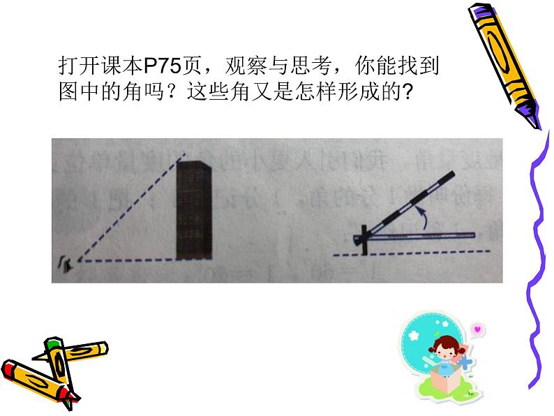 打开课本P75页,观察与思考,你能找到图中的角吗?这些角又是怎样形成的?