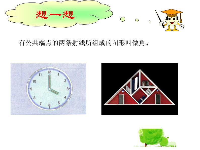 这是一份冀教版七年级上册2.5 角以及角的度量多媒体教学ppt课件,共24页。PPT课件主要包含了说一说生活中的角,活动一,角的定义,想一想,∠ACB,∠BAC,∠ABC,∠BCE,∠BAD,你会了吗等内容,欢迎下载使用。