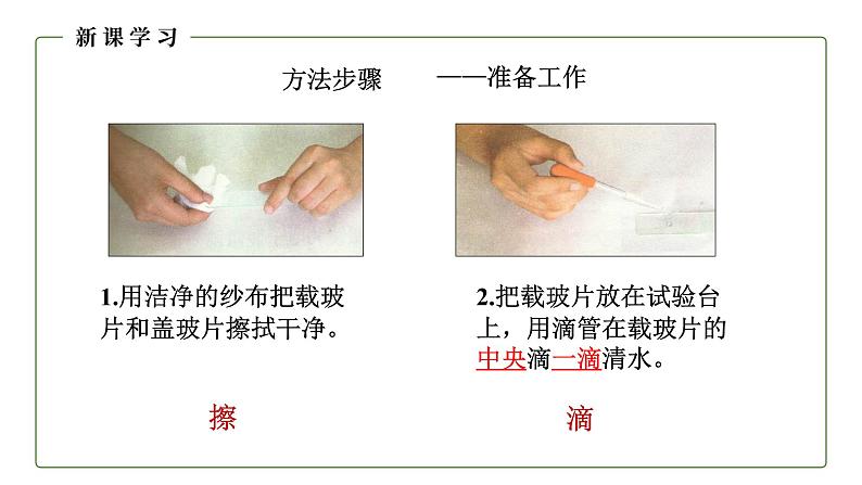 1.用洁净的纱布把载玻片和盖玻片擦拭干净。