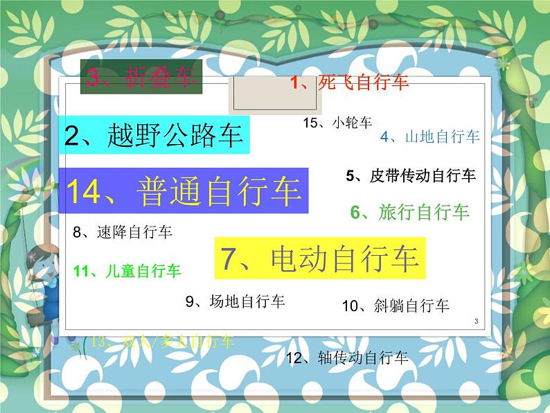 你认真观察过自行车吗?对自行车了解多少呢?研究过他的局部吗?通过仔细观察有什么新的发现?