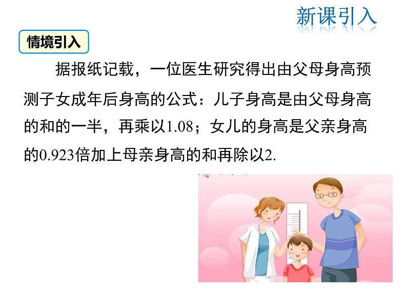 据报纸记载,一位医生研究得出由父母身高预测子女成年后身高的公式:儿子身高是由父母身高的和的一半,再乘以1.08;女儿的身高是父亲身高的0.923倍加上母亲身高的和再除以2.