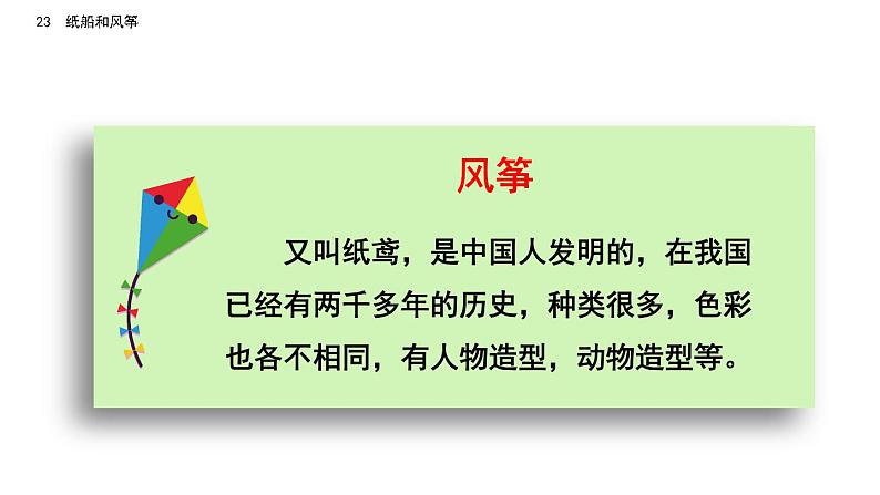 小学语文人教部编版二年级上册23 纸船和风筝课前预习课件ppt: 这是一份小学语文人教部编版二年级上册23 纸船和风筝课前预习课件ppt,共13页。