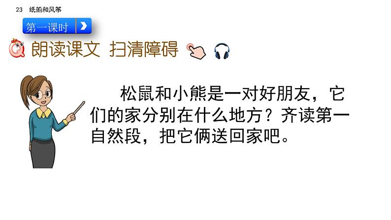 松鼠和小熊是一对好朋友,它们的家分别在什么地方?齐读第一自然段,把它俩送回家吧。