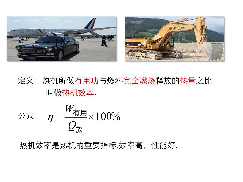 定义:热机所做有用功与燃料完全燃烧释放的热量之比叫做热机效率.
