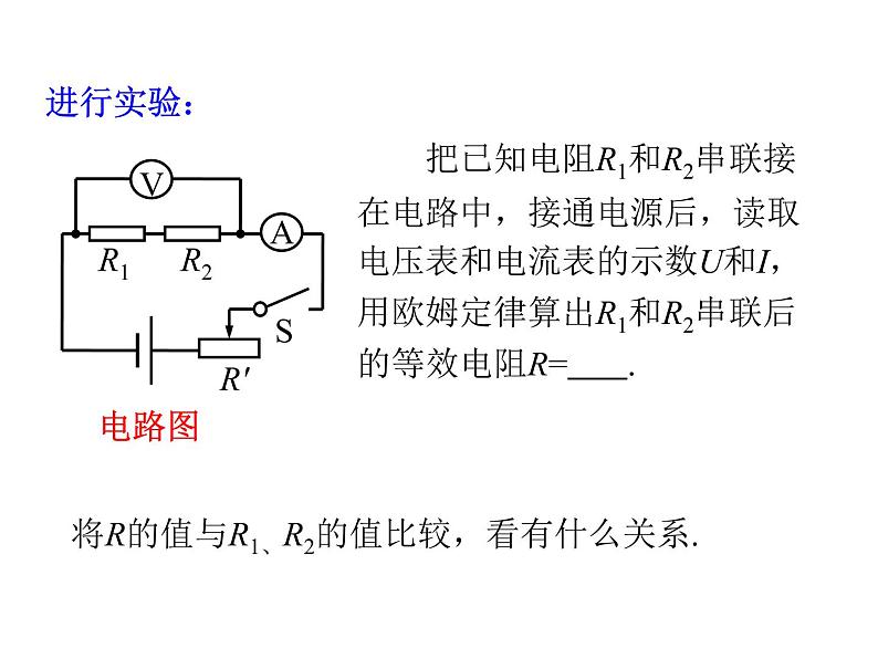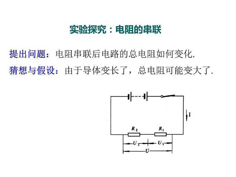 提出问题:电阻串联后电路的总电阻如何变化.猜想与假设:由于导体变长了,总电阻可能变大了.