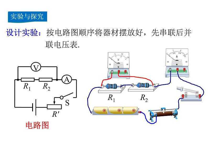 设计实验:按电路图顺序将器材摆放好,先串联后并联电压表.