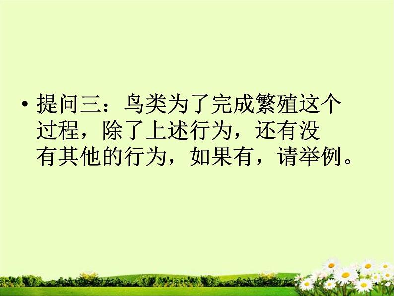 提问三:鸟类为了完成繁殖这个过程,除了上述行为,还有没有其他的行为,如果有,请举例。