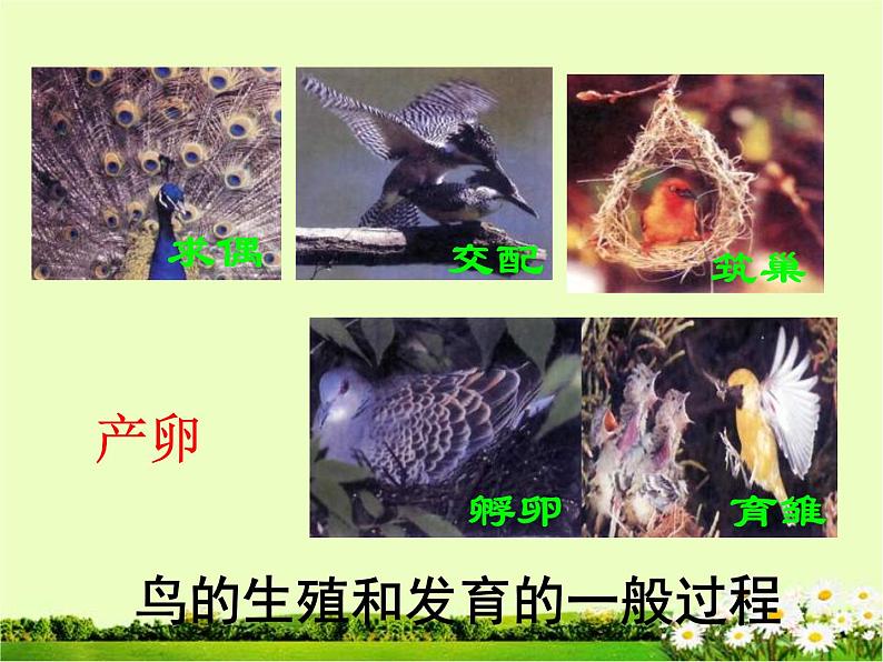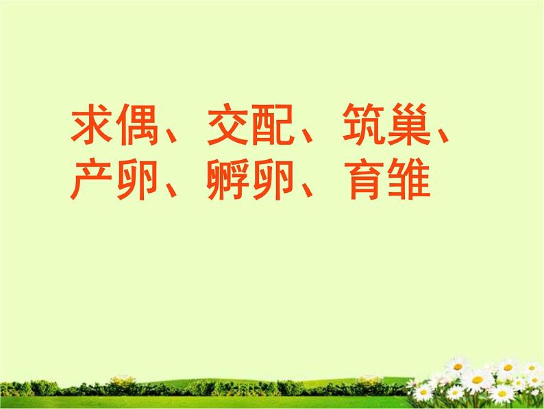 求偶、交配、筑巢、产卵、孵卵、育雏
