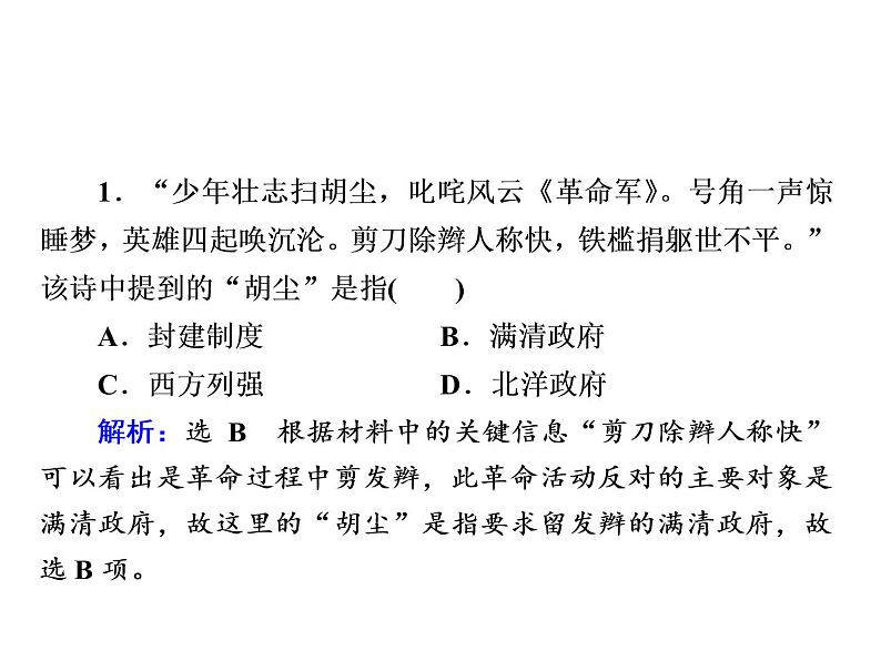 人教版 (新课标)必修1 政治史第四单元 近代中国反侵略、求民主的潮流第13课 辛亥革命备课课件ppt