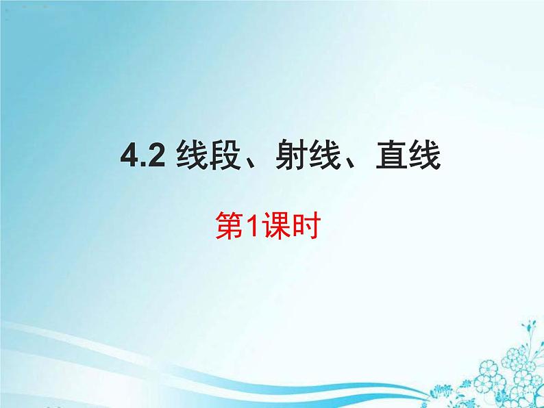 湘教版七年级上册4.2 线段、射线、直线教学演示ppt课件: 这是一份湘教版七年级上册4.2 线段、射线、直线教学演示ppt课件,文件包含42线段射线直线第1课时线段射线直线ppt、42线段射线直线42线段射线直线第1课时线段射线直线doc等2份课件配套教学资源,其中PPT共16页, 欢迎下载使用。