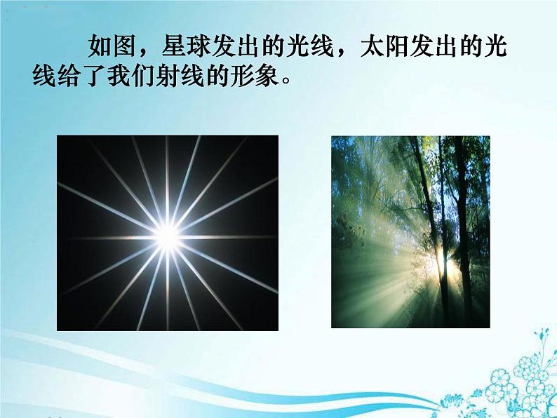 如图,星球发出的光线,太阳发出的光线给了我们射线的形象。