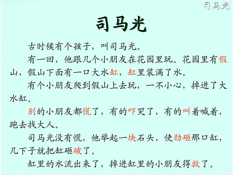 我们来复习一遍司马光砸缸救小朋友的故事。