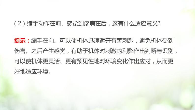 (2)缩手动作在前、感觉到疼病在后,这有什么适应意义?