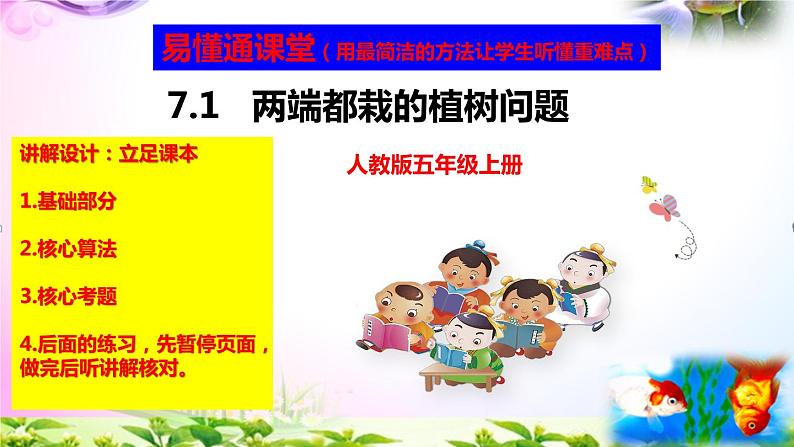 部编人教版五年级上册数学7.1两端都栽的植树问题课件+讲解视频+练习精讲【易懂通课堂】