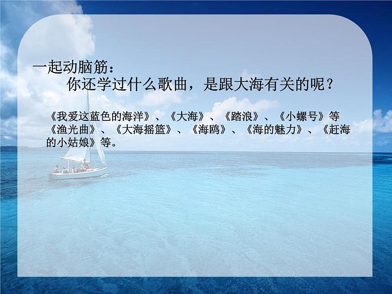 展开一起动脑筋: 你还学过什么歌曲,是跟大海有关的呢?
