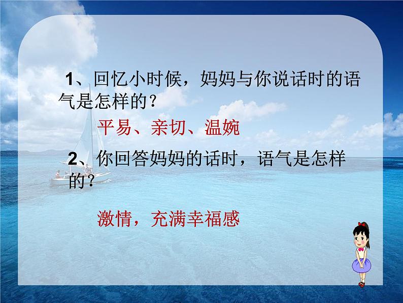 1、回忆小时候,妈妈与你说话时的语气是怎样的?