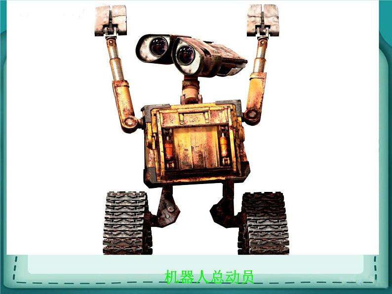 你好,机器人第11课 听话的Arduino机器人机器人的诞生第一台工业机器人:1959年诞生,制作人:英格伯格,德沃尔第一批工业机器人叫 “尤尼梅特”2000年,我国独立研制第一台人形机器人,能够模拟人类的基本动作。保洁机器人机器人总动员机器人服务员能力风暴机器人光敏传感器红外接收器红外发射器随动轮驱动轮电机驱动轮电机随动轮电 机碰撞开关碰撞环碰撞开关内部主板喇叭麦克风微控制器机器人的三个基本特征是什么? 机器人的三个基本特征是①身体:具有一定的形状②大脑:控制机器人的程序③动作:具有一定的动作。 红绿灯、自动门都属于机器人。讨论:1、预测机器人的发展趋势以及理由。2、设计自己的机器人任务一、理解算法问1:我们早晨起床要穿鞋袜,如果分解下这个动作,应该分成几步? 问2:打电话,可以分成哪几步?任务二:归纳程序设计的步骤实践1:控制机器人走直线小结:教师引导学生小结程序设计的步骤:设计算法——画流程图(拖动模块)——修改参数。 谢谢