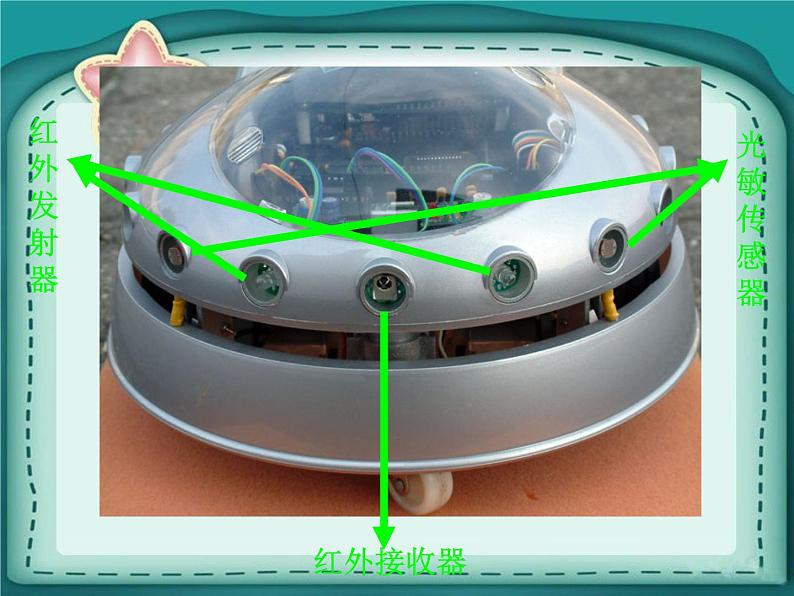 这是一份小学信息技术粤教版第三册上册一 认识Arduino机器人课文ppt课件,共32页。PPT课件主要包含了妈妈留下的痕迹,小瓢虫妈妈,Arduino的来源,Arduino机器人,Arduino主控器,马达驱动装置,供电装置,超声波测距传感器,轮子等结构装置,连接硬件等内容,欢迎下载使用。
