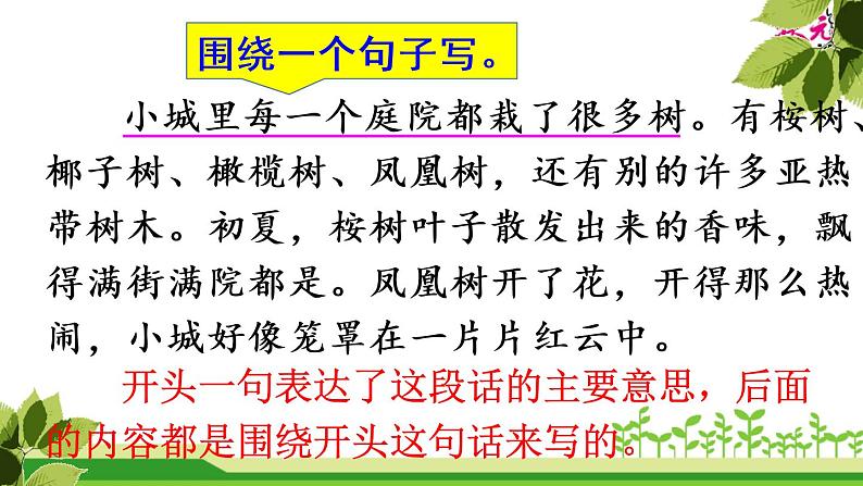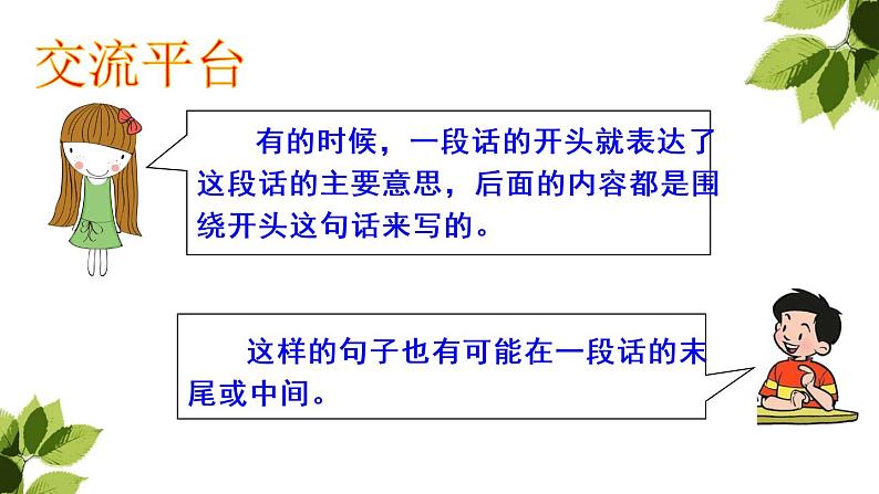 开头一句表达了这段话的主要意思,后面的内容都是围绕开头这句话来写的。