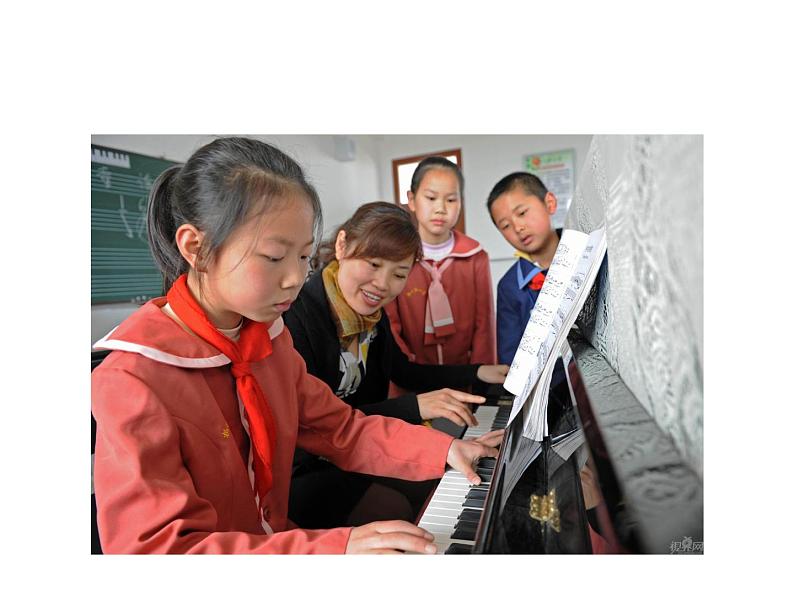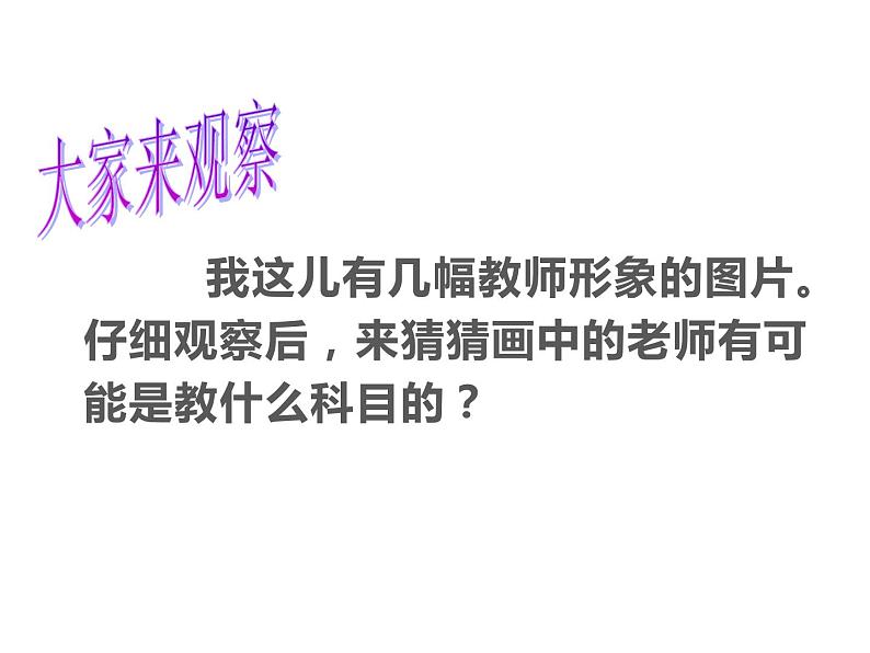 我这儿有几幅教师形象的图片。仔细观察后,来猜猜画中的老师有可能是教什么科目的?